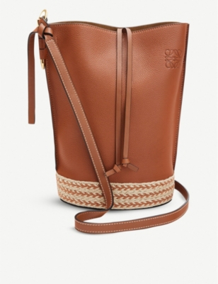 Loewe woven basket bag. Loewe gate eyelet logo bucket bag.
